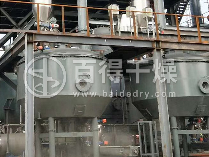 (3) 立式安裝, 保溫完善,熱源和廢熱利用率高,蒸發(fā)每公斤水僅需1.1~1.4公斤蒸汽。此外所需動力省,僅為回轉(zhuǎn)圊筒干燥器的五 分之一左右,經(jīng)濟(jì)可行。