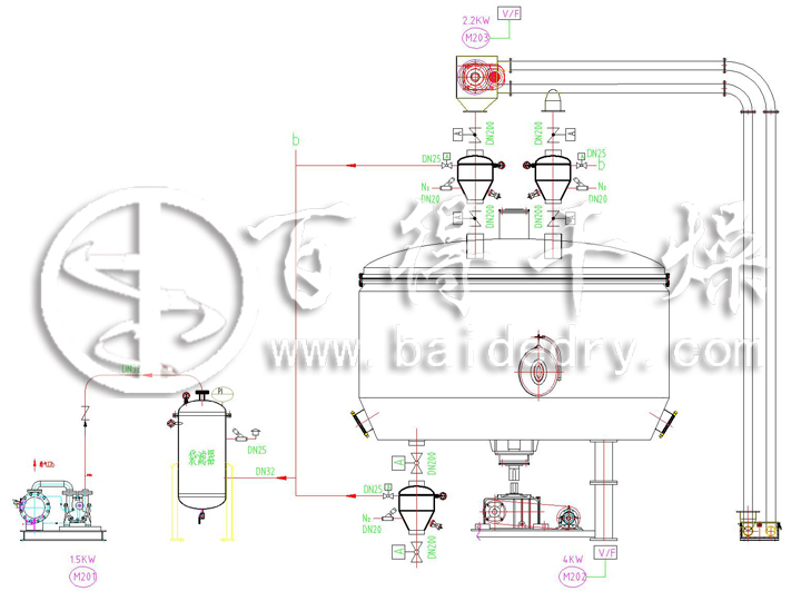 目前,百得干燥的盤式干燥器設計生產(chǎn)已工業(yè)系列化、企業(yè)標準化。按加熱盤直徑分,有1200、1500、2200、2500、3000五大規(guī)格系列;按操作壓力分,有常壓型及真空型;其共同處是加熱盤、轉(zhuǎn)耙攪拌機構(gòu)設計通用;不同處是真空型簡體、頂蓋、檢視門等按真空容器設計,汽化濕分蒸汽由真空冷凝系統(tǒng)回收。因此,對于熱敏性的和有毒有害、易氧化、易燃易爆類的物料干燥和(或)冷卻,^適用,同時可采用惰性氣體閉路循環(huán)操作,回收溶劑,生產(chǎn)安全,污染少,環(huán)保好。