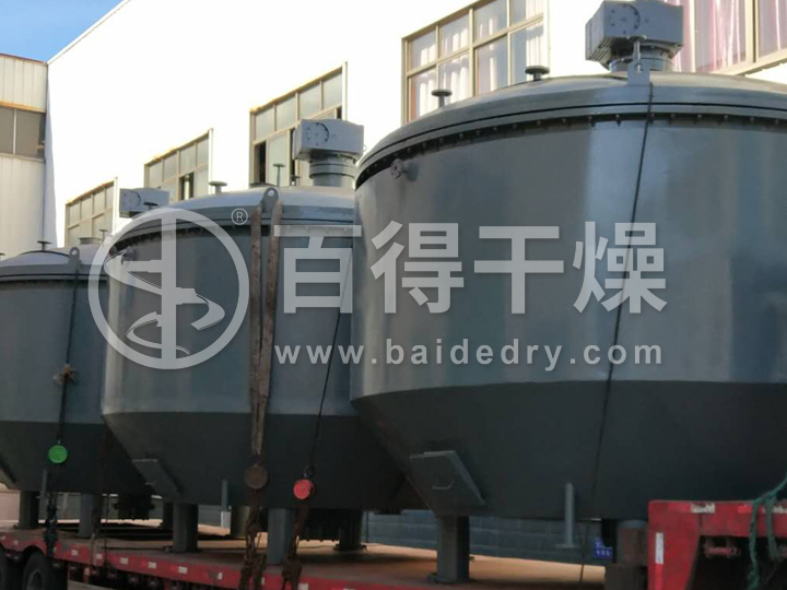 (2) 由于設有特殊的攪拌裝置,料層薄,攪拌強度大,加熱面更新率高,物料暴露在外邊的面積幾乎大于所有傳導干燥設備,傳熱傳質阻力小,效率高,總傳熱系數可達250~670kj/(m2.h.℃)以上。