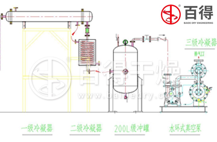 原料藥真空干燥機中采用干式真空冷凝系統,可以實現干燥工藝過程中有機溶劑的排氣側冷凝,進而實現有機溶劑的全回收,實現廢水和廢氣零排放。百得干燥通過系統優化設計,系統匹配性好,系統^大冷凝負荷顯著降低,占地省。干式真空冷凝系統不僅可以應用在新建項目中,也可以用于改造現有濕式真空系統。