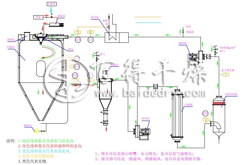 進料系統含料漿管路,料液分配器,霧化盤,充氮系統等