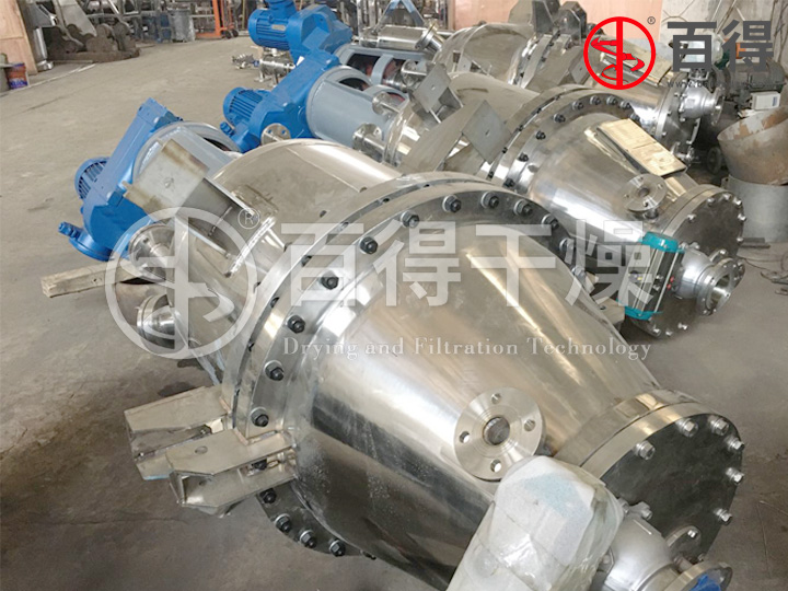 常州百得設計開發的過濾洗滌多功能干燥機將合成香料精制提純處理工序中多個單元操作集中在一個設備內完成,該設備可在密閉環境下依次完成過濾、洗滌、干燥、固體卸料全過程,避免了轉換工序時產品的輸送損失和污染,非常適用于合成香料、人工香精等小批量特殊化學品的生產。