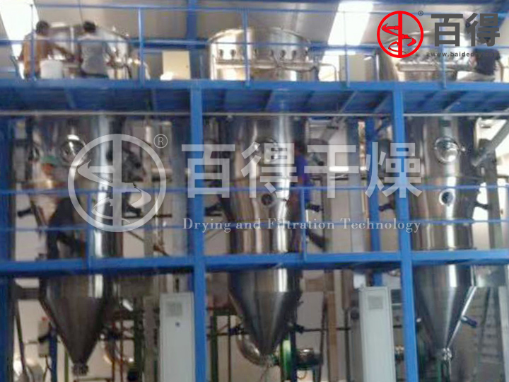 (3) 立式安裝,保溫完善,熱源和廢熱利用率高。 蒸發每公斤水僅需1.1~1.4 kg蒸氣。此外所需動力僅為回轉圓筒干燥機的1/10左右,經濟可行;