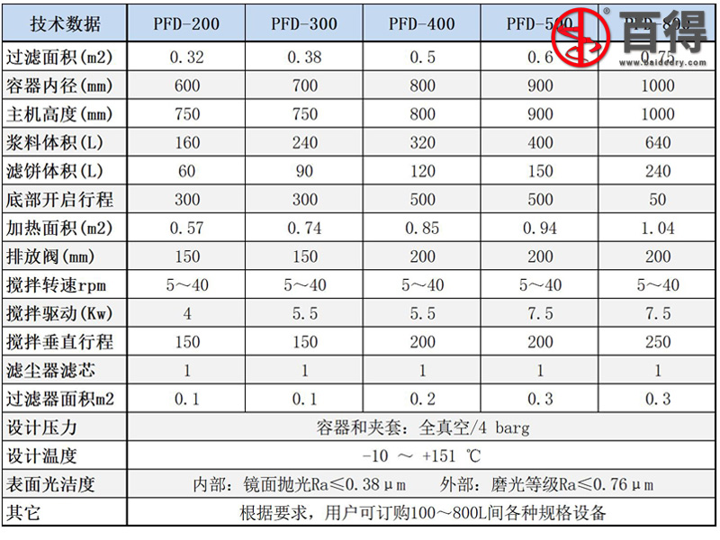中試攪拌洗滌過濾器&過濾洗滌干燥機 工藝參數