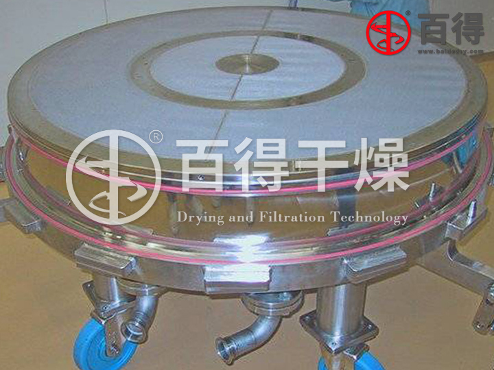 容器底座通常是柱狀安裝的,用于下降和向側面位移。這樣可以很好地接近濾板進行清潔和檢查,也可以在過濾器底座上安裝新的濾布。過濾板上的環形凹槽設計用于使用PTFE繩索固定濾布。聚四氟乙烯繩索與布料一起被壓入凹槽中,從而使布料能夠順利安裝而不會出現褶皺。固定后,PTFE繩索外部的布被切斷。這種布置還允許通過隔離器對用過的濾布進行封閉處理。