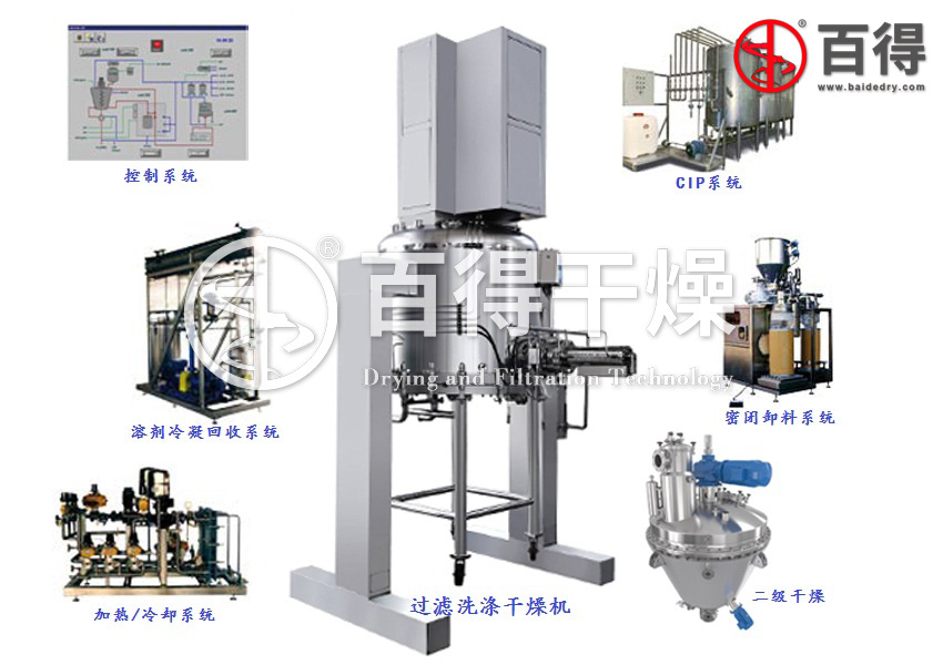 中試攪拌洗滌過濾器&過濾洗滌干燥機用于處理活性藥物成分(API),因此需要不同程度的控制,以進行取樣、產品排放、產品包裝、底板脫卸和濾布處理。