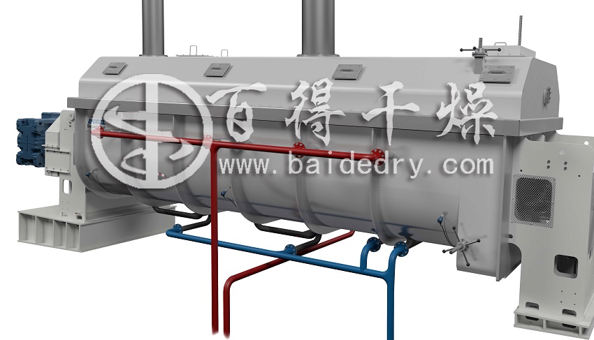 2、熱量利用率高,槳葉式污泥干燥機采用傳導加熱方式進行加熱,沒有熱空氣帶走熱量,熱量利用率可達90%以上;