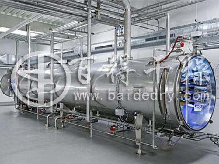 加熱系統是提供物料蒸發水分所需熱量的裝置。間熱式加熱系統通常由熱交換器、熱水泵、氣水分離罐、溫度計、管路及加熱溫度平穩、物料受熱均勻、易于控制的優點、但該加熱系統較復雜,需要配備熱媒循環泵和熱源設備等,成本相對較高。加熱系統一般不采用電加熱直熱傳導方法,這是因為物料干燥后設備常需用水清洗,比較容易發生故障。一般來說,加熱區可以分成幾個子加熱區,在不同的干燥階段,根據物料的性質,提供適宜的加熱溫度,以達到節能和保證制品質量的目的。