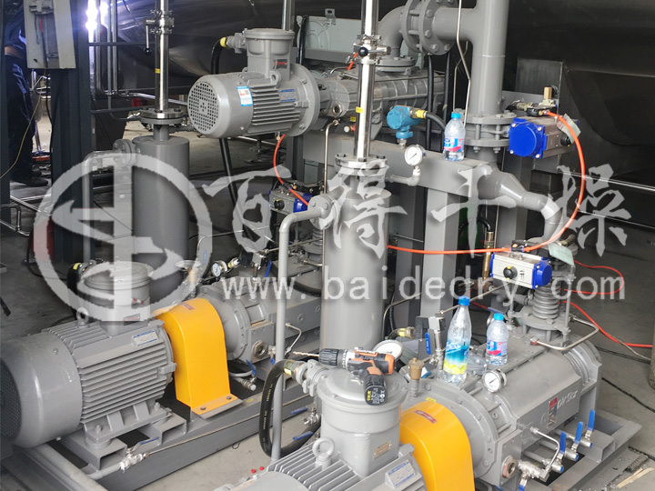 真空系統是為干燥過程提供傳質動力的裝置。目前在真空干燥中去除水蒸汽的方法主要有兩種。一是采用水蒸汽噴射泵加水環泵的抽氣系統,常見的有羅茨真空泵、水環式真空泵、水蒸汽噴射真空泵,水噴射真空泵系統,直接抽除大量的水蒸汽;另一種是捕水器加真空泵,先用捕水器將水蒸汽捕集,然后用旋片泵等真空泵抽除剩余氣體。
