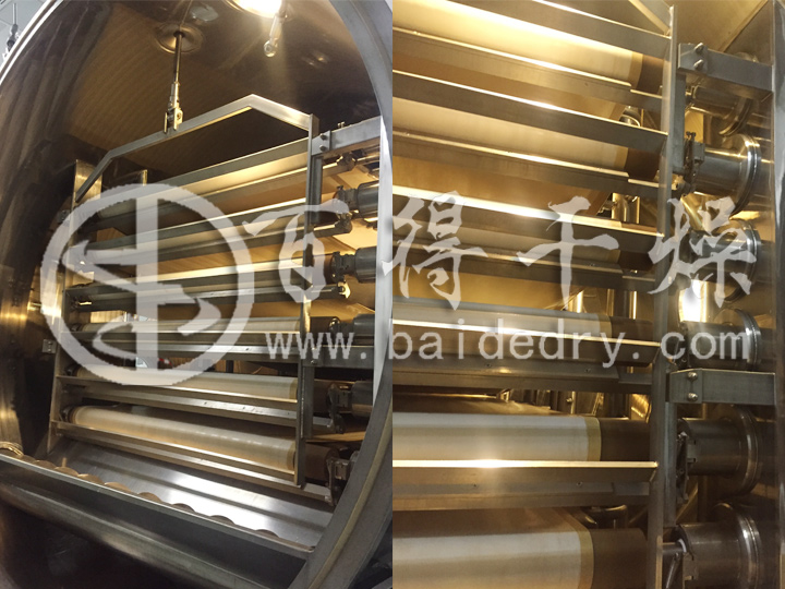 常見真空干燥為間歇式生產,產品品質好但效率比較低,帶式真空干燥機正是既保持了真空干燥的優點,又能連續生產,且適合干燥多種物料(液態、粉糕狀及固態物料),是加工優質產品的又一選擇。